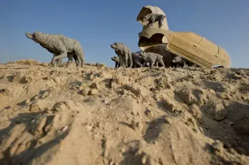 Dit is een creatie van de Nederlands kunstenaar Folkert de Jong. Hij zou geïnspireerd zijn door Breughel.