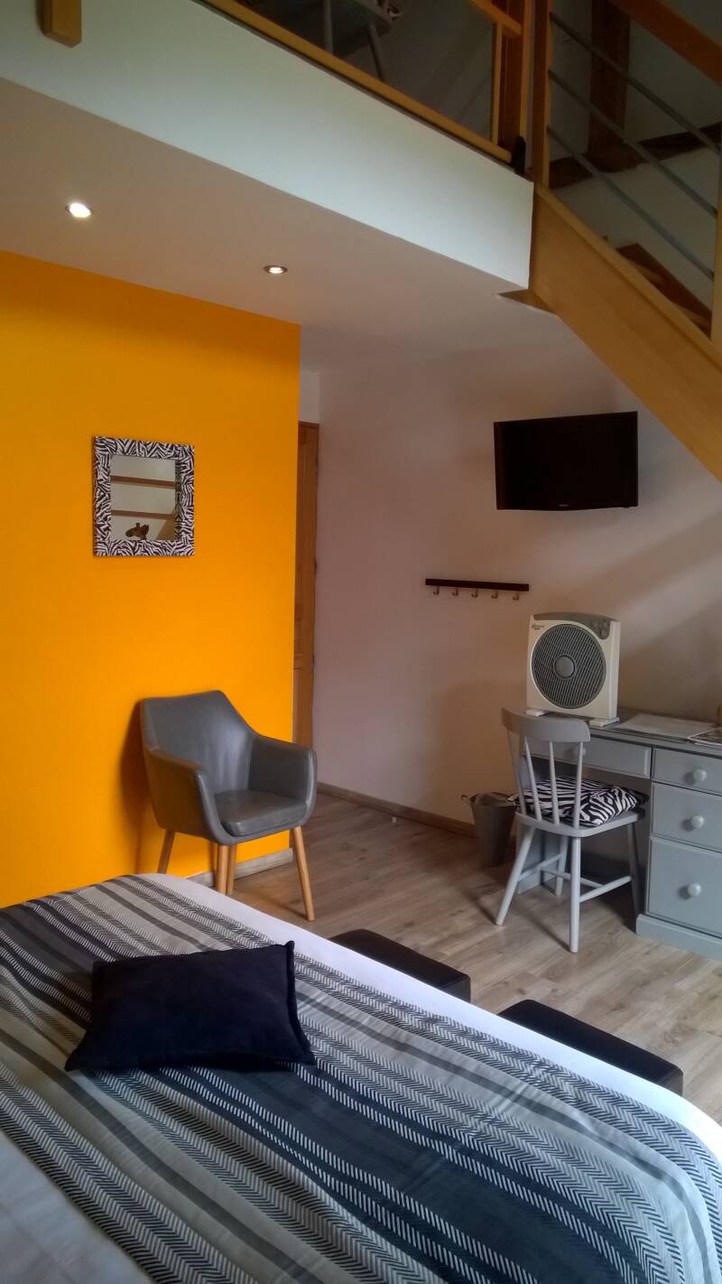 Er zijn kamers in het gedeelte van de 'vroegere boerderij'. De kamer is gezellig ingericht en heel netjes.