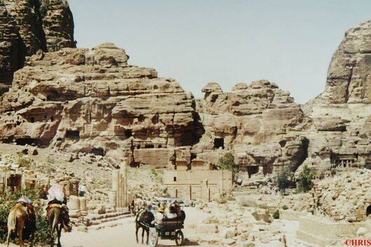We zijn nog onder de indruk van de 'Al-Khazneh, Schat van de Farao'. Aan het voorplein van de schatkamer begint de bredere, zogenaamde buitenste Siq.